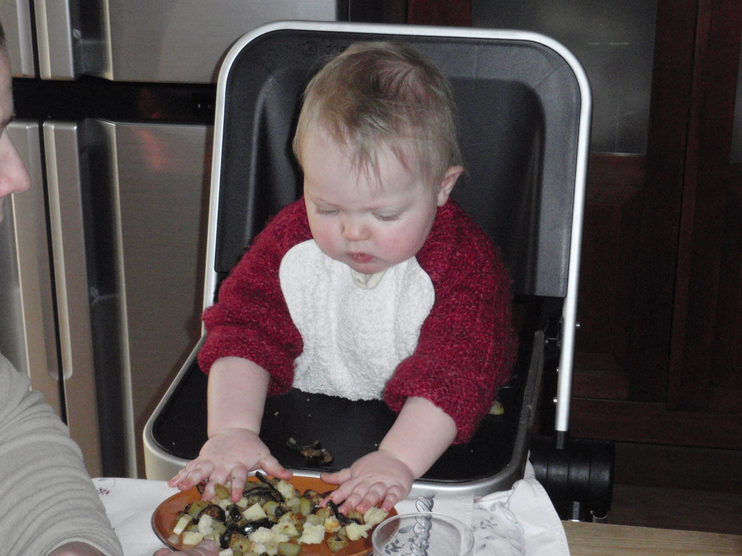 Non meravigliamoci se nostro figlio vuole usare le mani: questo è il modo più ovvio e semplice di mangiare. Per usare le posate c’è sempre tempo, tanto non credo che dovranno partecipare a un concorso di bon-ton 😀