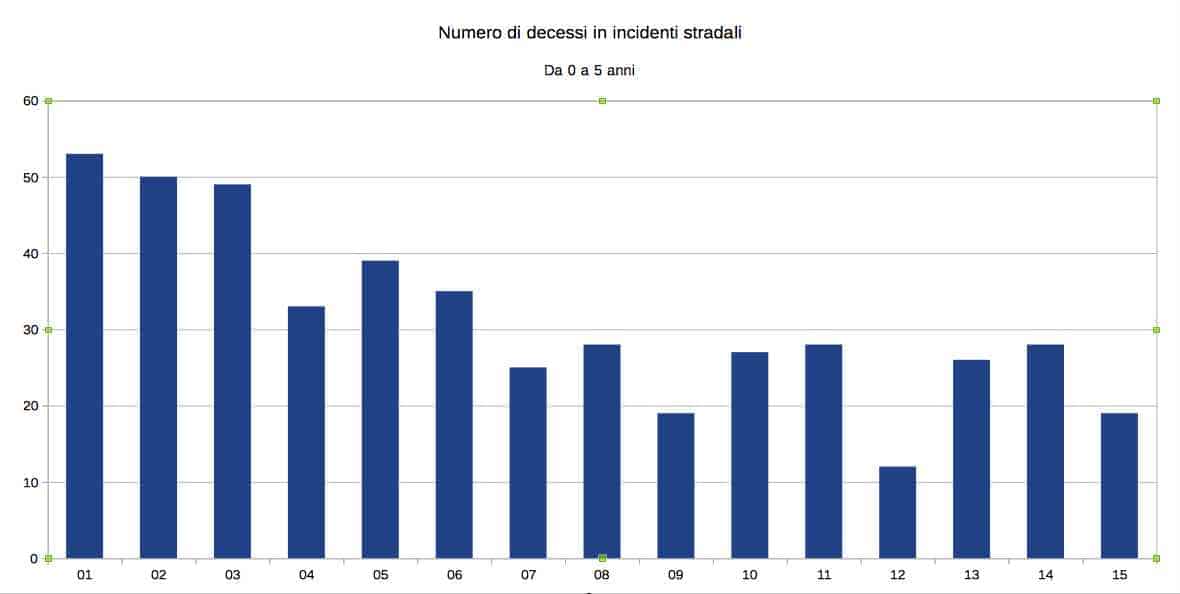 Per dare ulteriore contesto, quindi seguito trovate il grafico dei decessi in incidenti stradali di tutti i generi di bambini da 0 a 5 anni.