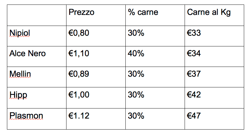Per finire parliamo del costo degli omogeneizzati di carne.