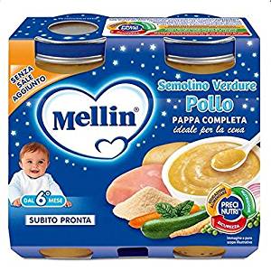 Esempio: “Pappa completa verdura semolino pollo” della Mellin, da 200 g.